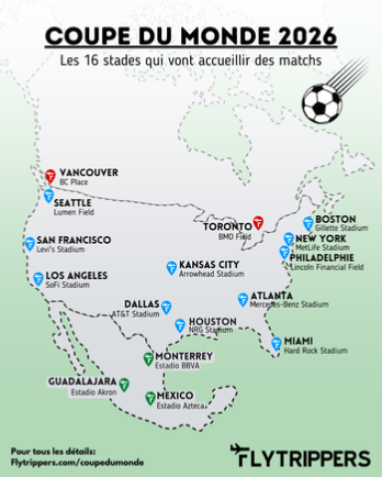 COUPE DU MONDE 2026 - 54 matchs su M6 sur les 104 , le reste n’est pas distribué. Ce qui veut dire qu’on aura Xavier Domergue pour hurler pendant cette épreuve. Pas de Margotton, donc. - 42 équipes sont qualifiées - manquent 6 équipes qui doivent se départager - le 26 mars : 10 matchs pour les 20 équipes, dont l’Italie, le Danemark, l’Ukraine, la Suède, les 2 Irlandes et la Nouvelle-Calédonie. - le 31 mars , 6 matchs , les 10 qualifiés du 26 mars + l’Irak et la RD du Congo, têtes de série qui n’auront pas joué le 26 mars. - Les stades : 2 stades au Canada, 3 au Mexique et 11 aux Etats Unis.